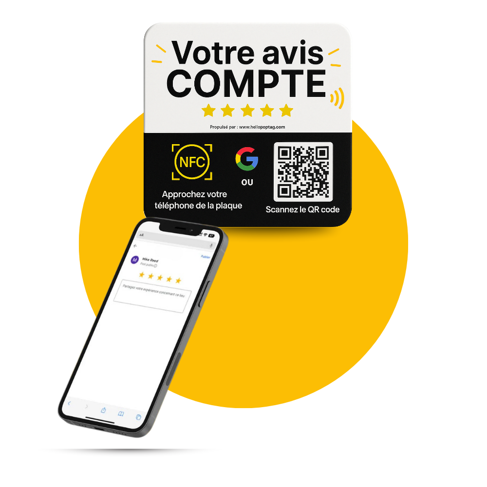 C’est une question légitime ! Mais voici ce que nous observons : plus de 95 % des avis laissés via nos plaques sont positifs. Lorsqu’un client est satisfait, il a juste besoin d’un petit rappel pour laisser un bon avis – c’est exactement ce que permet la plaque.