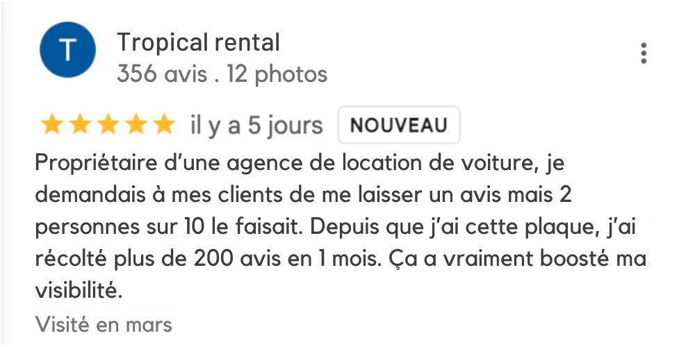 C’est une question légitime ! Mais voici ce que nous observons : plus de 95 % des avis laissés via nos plaques sont positifs. Lorsqu’un client est satisfait, il a juste besoin d’un petit rappel pour laisser un bon avis – c’est exactement ce que permet la plaque.